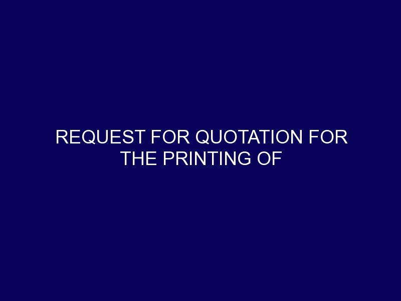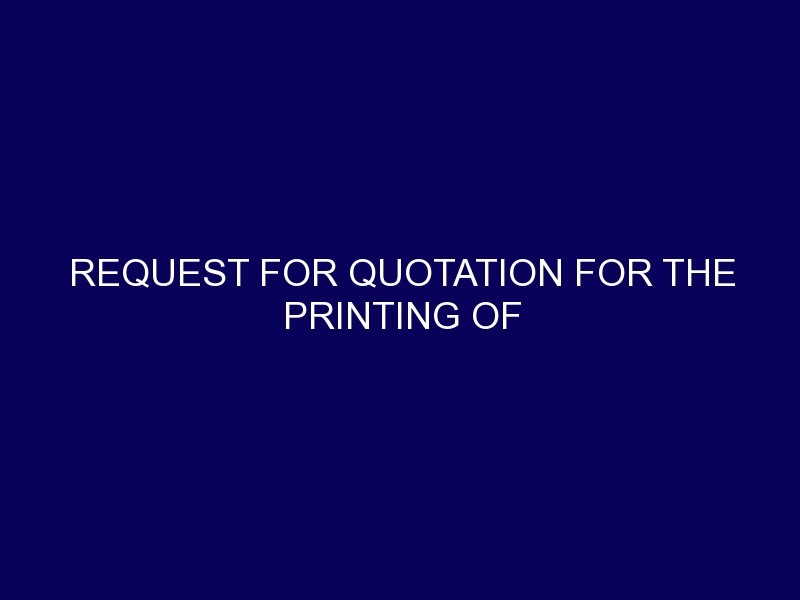 REQUEST FOR QUOTATION FOR THE PRINTING OF RECORDING AND REPORTING TOOLS FOR NTBLCP