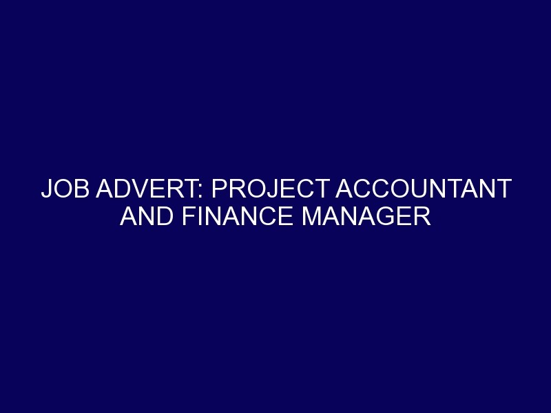 JOB ADVERT: PROJECT ACCOUNTANT AND FINANCE MANAGER
