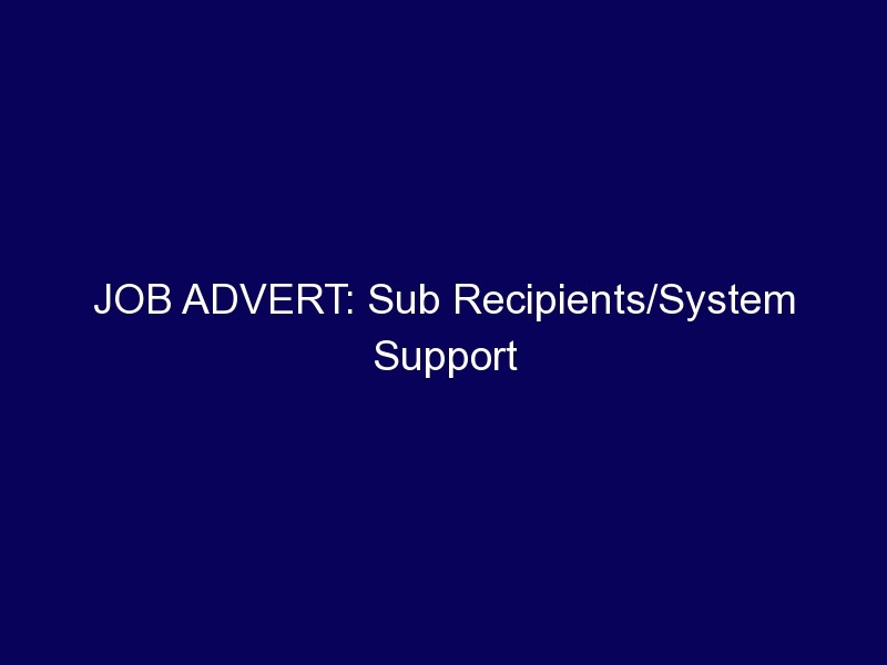 JOB ADVERT: Sub Recipients/System Support Accountant, Abuja