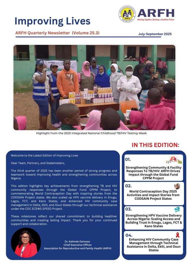 In the third quarter of 2025, ARFH continued to make strong progress in improving health and strengthening communities across Nigeria. This edition of the Improving Lives newsletter showcases how ARFH strengthened community and facility responses to TB and HIV, expanded access to self-injected contraceptives, scaled up HPV vaccination for adolescent girls, and enhanced HIV community […]